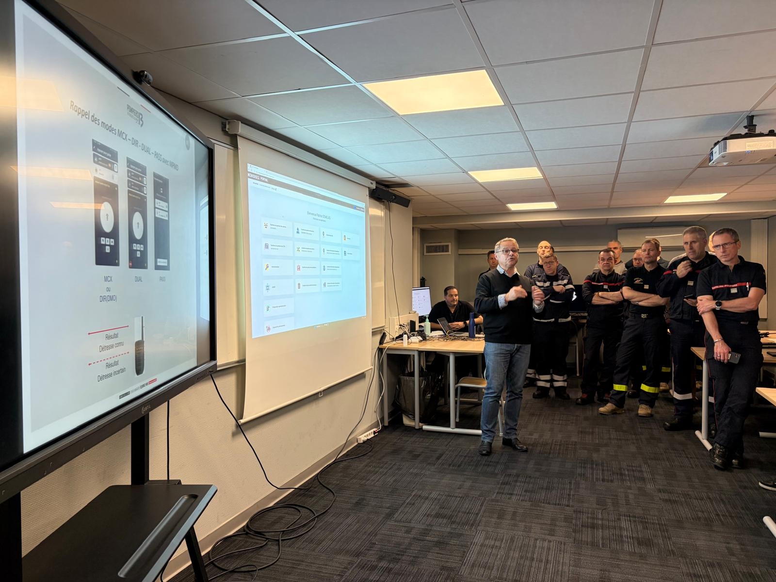 Par la suite, les participants ont pu expérimenter des solutions au sein du laboratoire numérique du SDIS13. Des démonstrations ont été réalisées autour des fonctionnalités du Réseau Radio du Futur (RRF), notamment en matière de gestion des appels de détresse, en conditions de couverture 4G et hors couverture grâce à des dispositifs comme le modèle de micro‑poire en mode direct développé par l'ACMOSS.