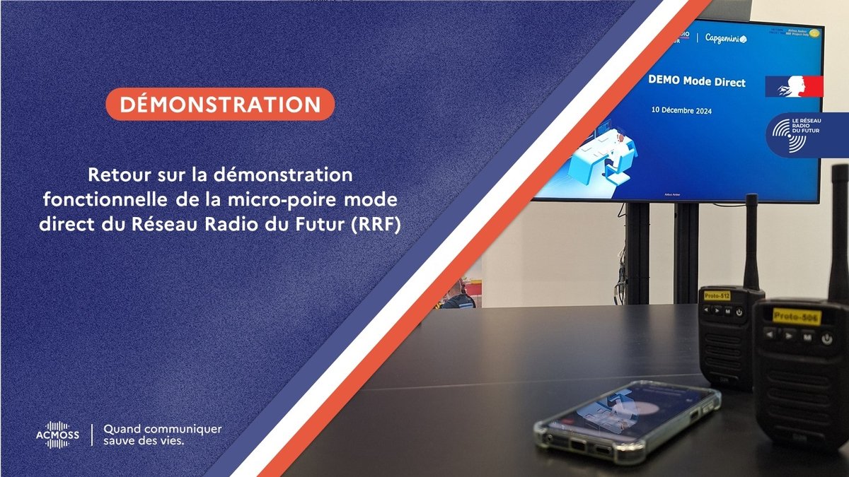 Les équipes de l'agence en collaboration avec les industriels Airbus et Capgemini ont réalisé le 10 décembre à l’ACMOSS, une démonstration fonctionnelle de la micro‑poire mode direct. Une fonctionnalité essentielle devant garantir la continuité des communications critiques entre les forces de sécurité, de secours et de santé, même hors couverture réseau.