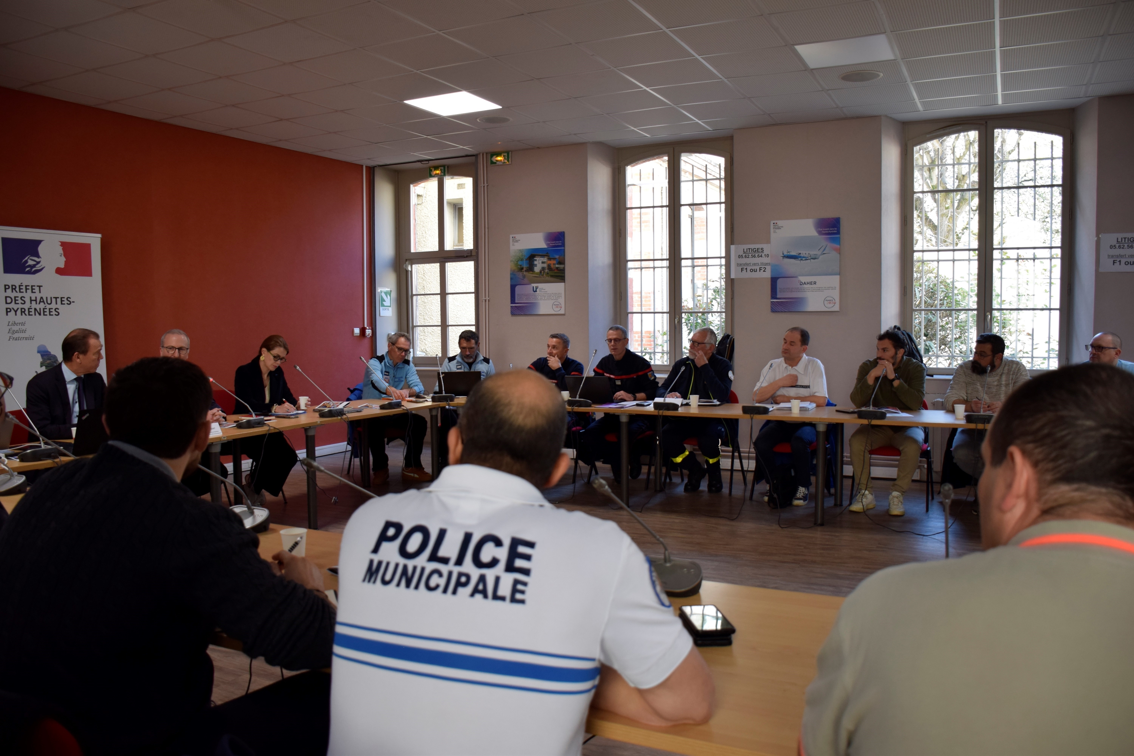 Plusieurs acteurs de la sécurité et des secours étaient réunis : douanes, armée, gendarmerie, BGTA, PGHM, DDPN, CRS des Pyrénées, polices municipales de Tarbes et Lourdes, centres pénitentiaires, conseil départemental, associations de secourisme, ADRASEC, SIDSIC, SIDPC, sous‑préfètes et sanctuaire de Lourdes.