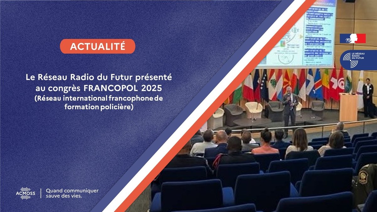 Le 8ème congrès international Francopol s'est tenu du 7 au 9 octobre 2025 à Paris La Défense, réunissant près de 70 organisations francophones (services de police, écoles de police, centres de formation et chercheurs) sur le thème des nouvelles technologies au service de l'action policière. L'Agence des communications mobiles opérationnelles de sécurité et de secours (ACMOSS) y a joué un rôle clé en lien avec Airbus Public Safety & Security pour présenter le Réseau Radio du Futur (RRF).