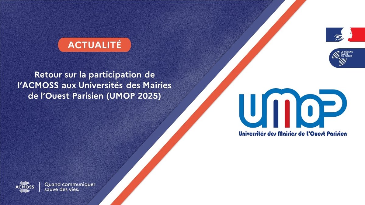À l'occasion des l'Université des Mairies de l'Ouest Parisien (UMOP 2025), qui se sont tenues le 8 octobre à Port‑Marly, l'Agence des communications mobiles opérationnelles de sécurité et de secours (ACMOSS) y a mis en lumière le Réseau Radio du Futur (RRF) - une avancée stratégique pour renforcer la sécurité publique, la coordination territoriale et notamment la modernisation des polices municipales.
