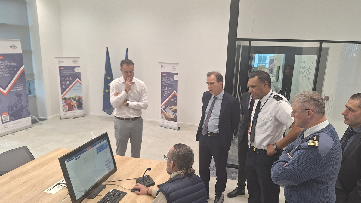 Le mercredi 4 décembre 2024, le Général de division aérienne Laurent Boïté, chef de la division stratégie numérique des armées, a été accueilli dans les locaux de l’ACMOSS par le Préfet Guillaume Lambert, directeur général et les équipes de l’agence. Cette visite a notamment été l’occasion de faire un état des lieux de l’avancement du déploiement du Réseau Radio du Futur (RRF) au sein des directions, armées et services en termes de besoins opérationnels et d'intégration dans les systèmes existants.