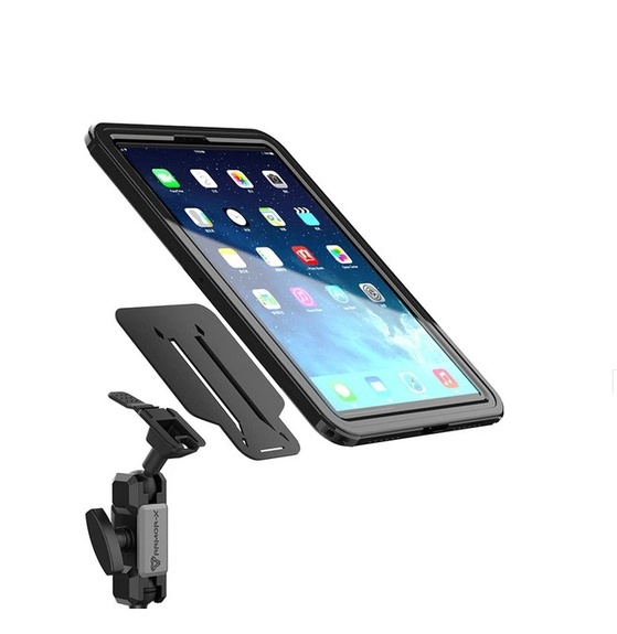 Solution support/Adaptateur pour tablette avec tête de rotule qui s'accroche sur un bras court ou double.