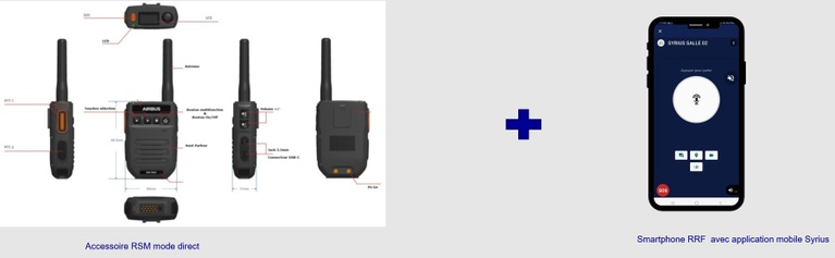 Afin de bénéficier du moyen de communication direct avec les autres utilisateurs ainsi que les services et fonctionnalités offertes, il est obligatoire d'avoir les équipements nécessaires à savoir une combinaison de l'accessoire de type RSM mode direct lié à un smartphone doté de l'application MCX Syrius. La RSM mode direct peut être connectée au smartphone via un câble, connexion filaire ou via Bluetooth.