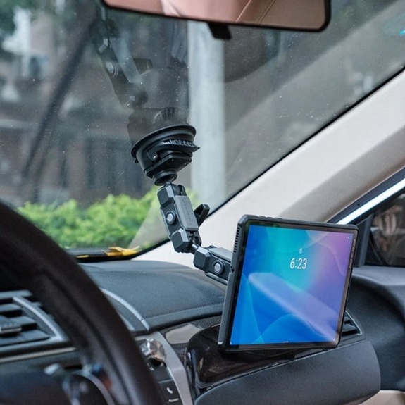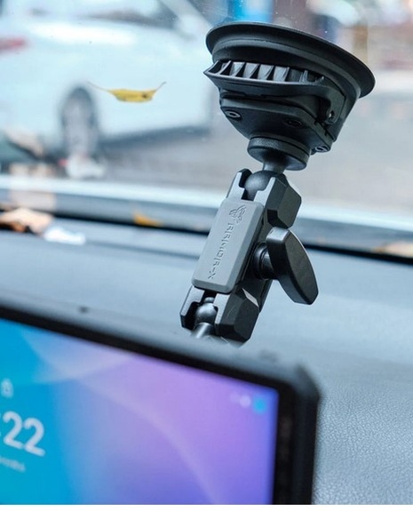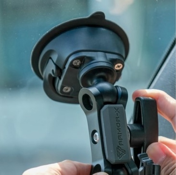 Support de maintien d'un smartphone et tablette dans un véhicule. Il s'agit d'une base de montage à simple ventouse. Cet accessoire est un élément de la solution adaptable ARMOR‑X ONE‑LOCK X‑Mount. C'est une solution de montage robuste et polyvalente.