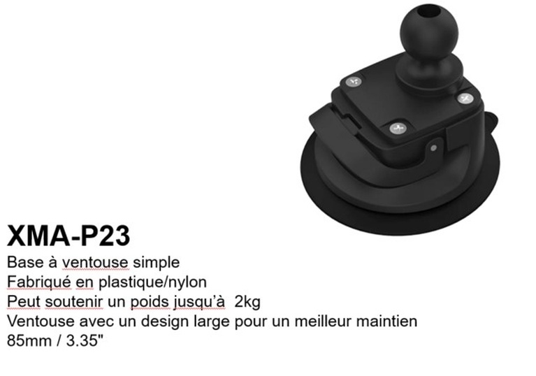 Caractéristiques | Base de montage ventouse simple et solide. Puis choisir un bras court ou double et un adaptateur/clip. | |